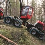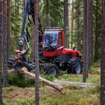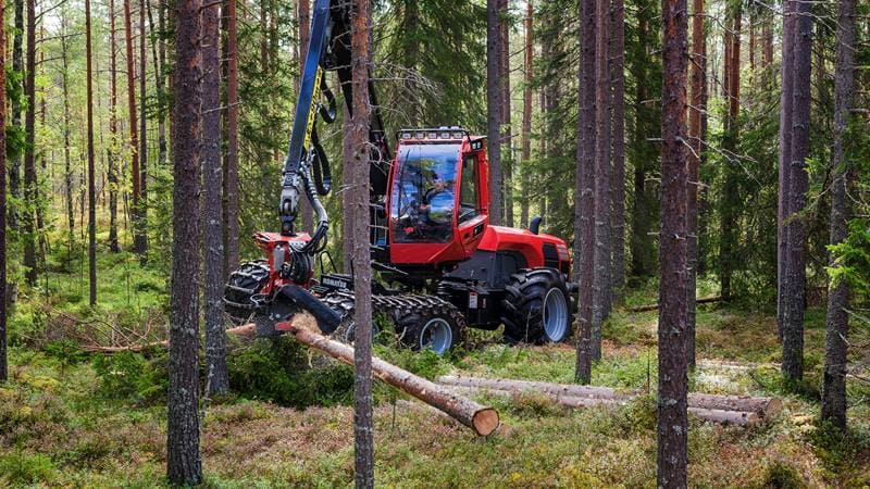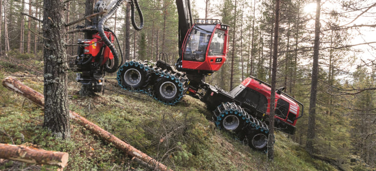 Машина позволяет в движении одновременно работать и манипулятором и харвестерным агрегатом, сохраняя при этом минимальный расход топлива.