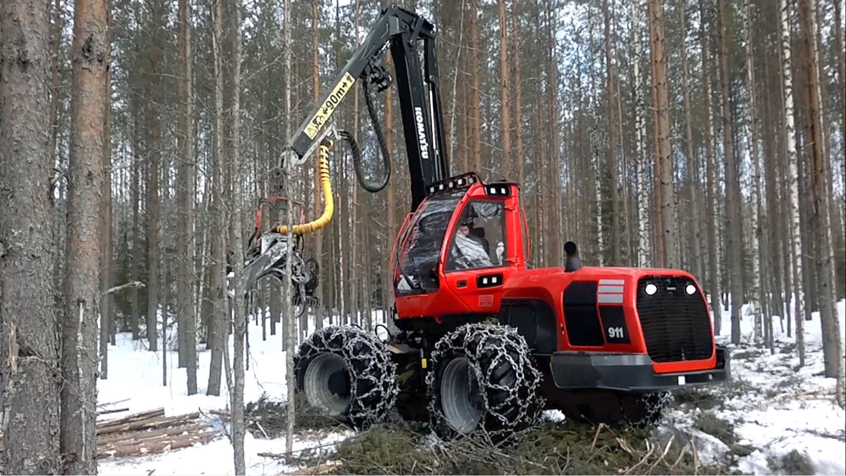 Komatsu 911(4WD) - универсальный харвестер, который позволяет оценить новые технологии уже сегодня. А четырех колесная формула делает из него универсальную машину для сплошных и промежуточных рубок.