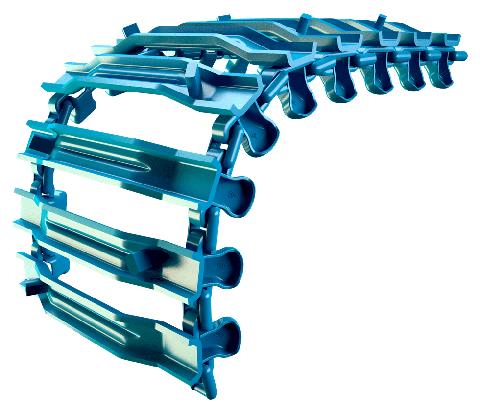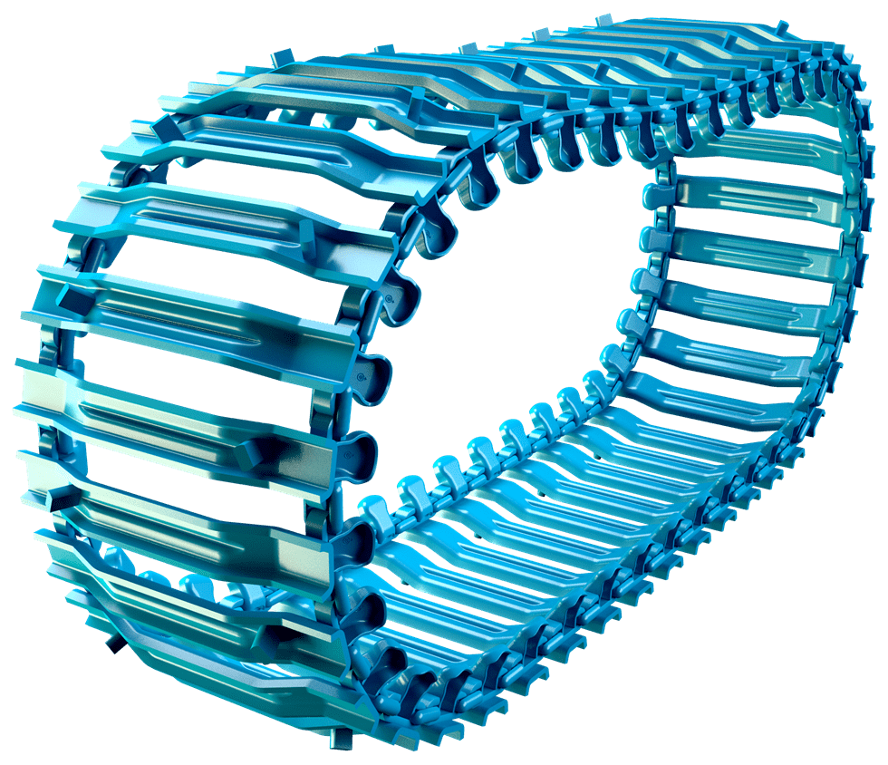 Гусеница получила свое название от траков с компонентами в форме буквы U, которые делают ее оптимальной для работы на влажных, мягких и холмистых почвах.